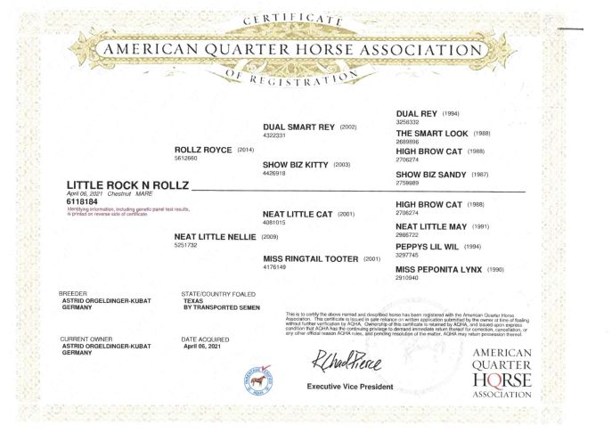 Dam: Kitty Cow Smart, a money winning daughter of High Brow Cat out of the great producer Dox Cow Smart, a full sister to Smart Little Lena.