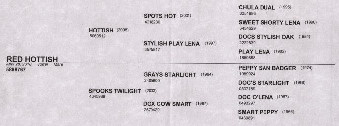 Sire: Hottish, earner of $301,000+, NCHA Open Derby Champion.
